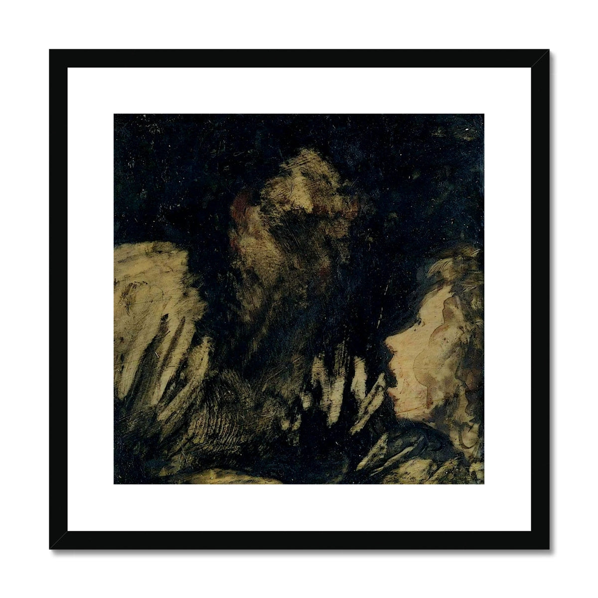 Boy Staring at an Apparition (1824–1825) by Francisco Goya exemplifies the artist’s late meditations on mortality, fear, and the unseen. The work presents the faint profile of a young boy, his pale features illuminated against a void of shadow as he confronts an indistinct, spectral presence. Executed with vigorous, almost abstract brushwork and a somber palette, the composition resists clarity, evoking the instability of vision and the blurred threshold between reality and imagination. This enigmatic scene reflects Goya’s profound engagement with the psychological and existential anxieties that permeated his final years.