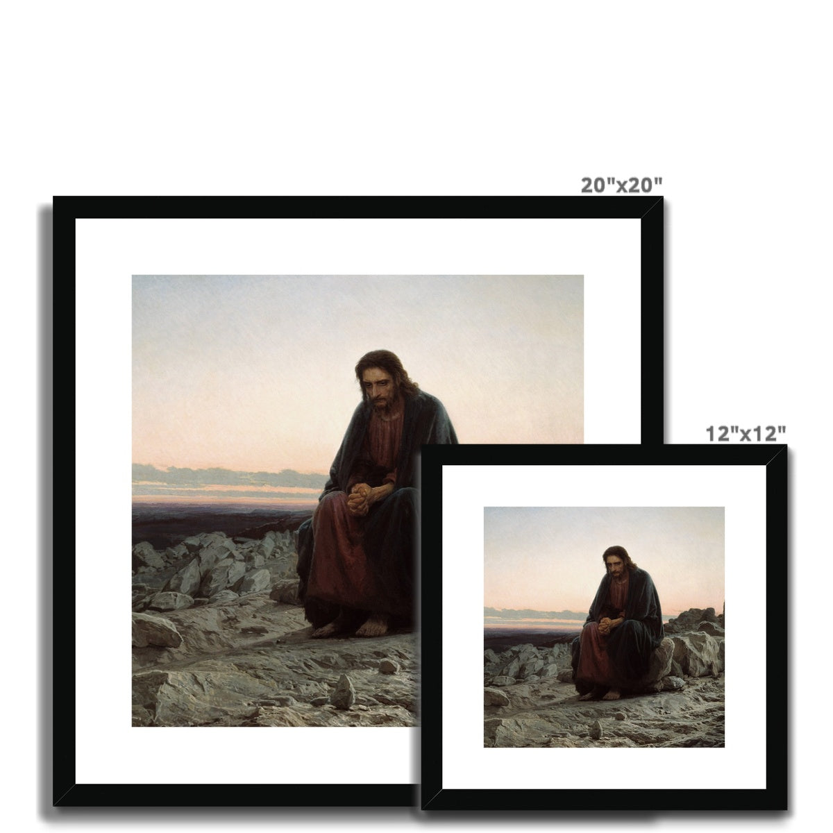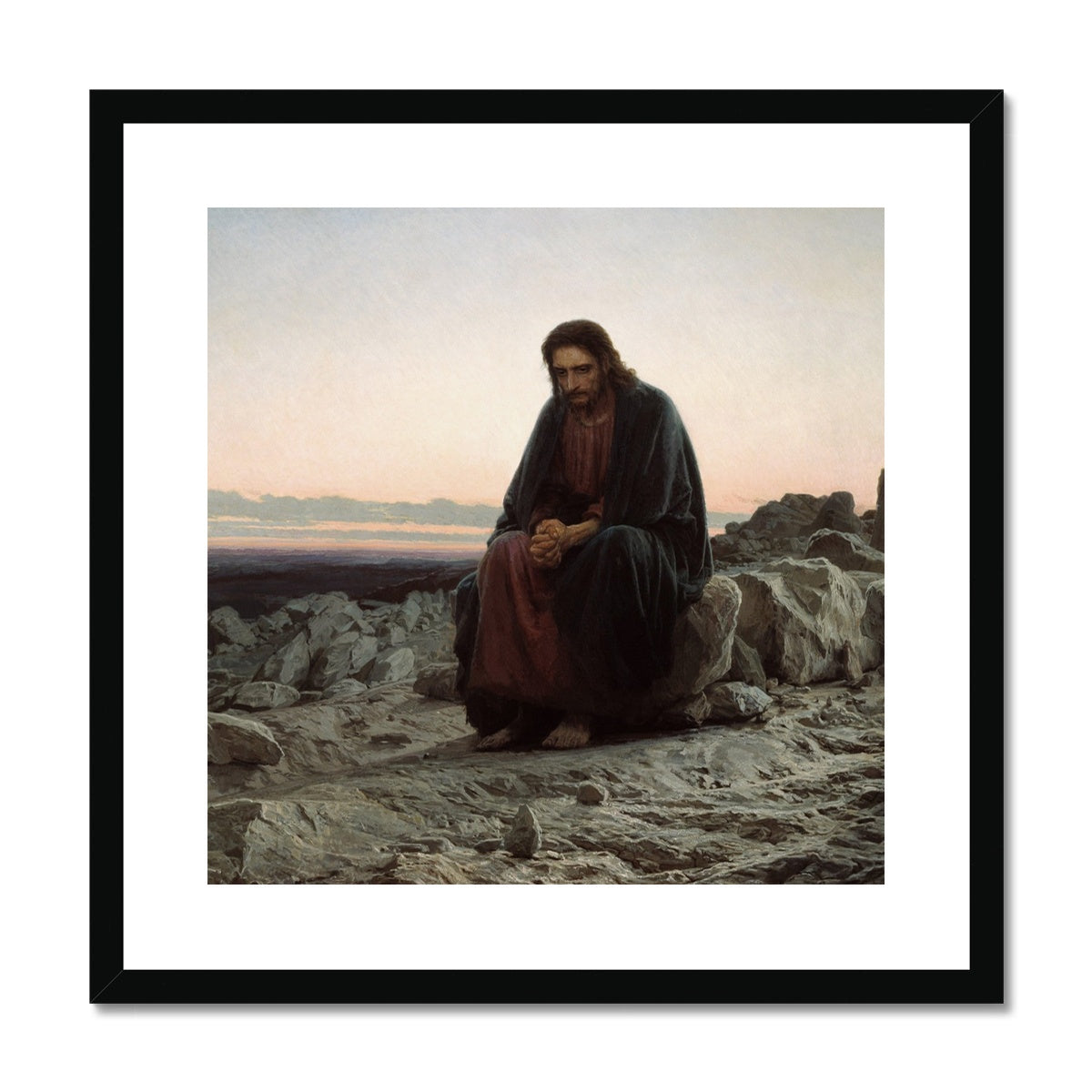 This beautiful framed and mounted print of 'Christ in the Wilderness', created by the acclaimed artist Ivan Kramskoy in 1872, is perfect for any art enthusiast to add to their collection. With exquisite precision and details, this print is sure to captivate viewers and immediately draw them in.