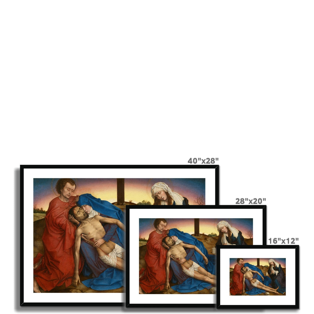 This framed and mounted print of Pietà by Rogier van der Weyden is museum grade quality, perfect for art enthusiasts or collectors. With simple framing, this stunning print is a sophisticated addition to any wall.