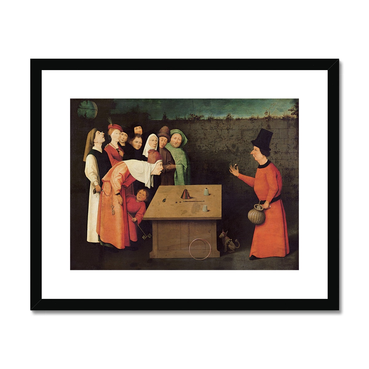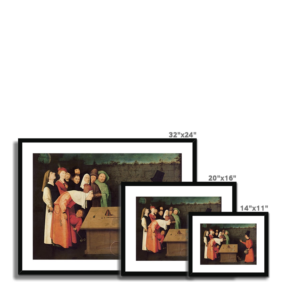 This framed and mounted print of Hieronymus Bosch's masterpiece, The Conjurer, will make a striking addition to any wall. Its framed and mounted finish ensures a high-quality display. Get ready to be impressed by this 1502 masterpiece in your home or office.