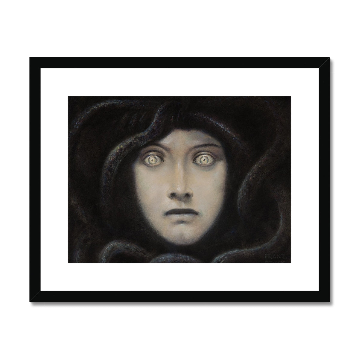 In The Head of Medusa, Franz von Stuck presents a haunting Symbolist vision of the mythic Gorgon. Emerging from shadow, Medusa’s pale face and wide, hypnotic eyes confront the viewer with a paralyzing stare. Her hair, formed of writhing serpents, frames the expressionless mask of beauty and horror. Painted in 1892, this work distills myth into a psychological icon—eerie, captivating, and charged with the dark allure of the fin de siècle.