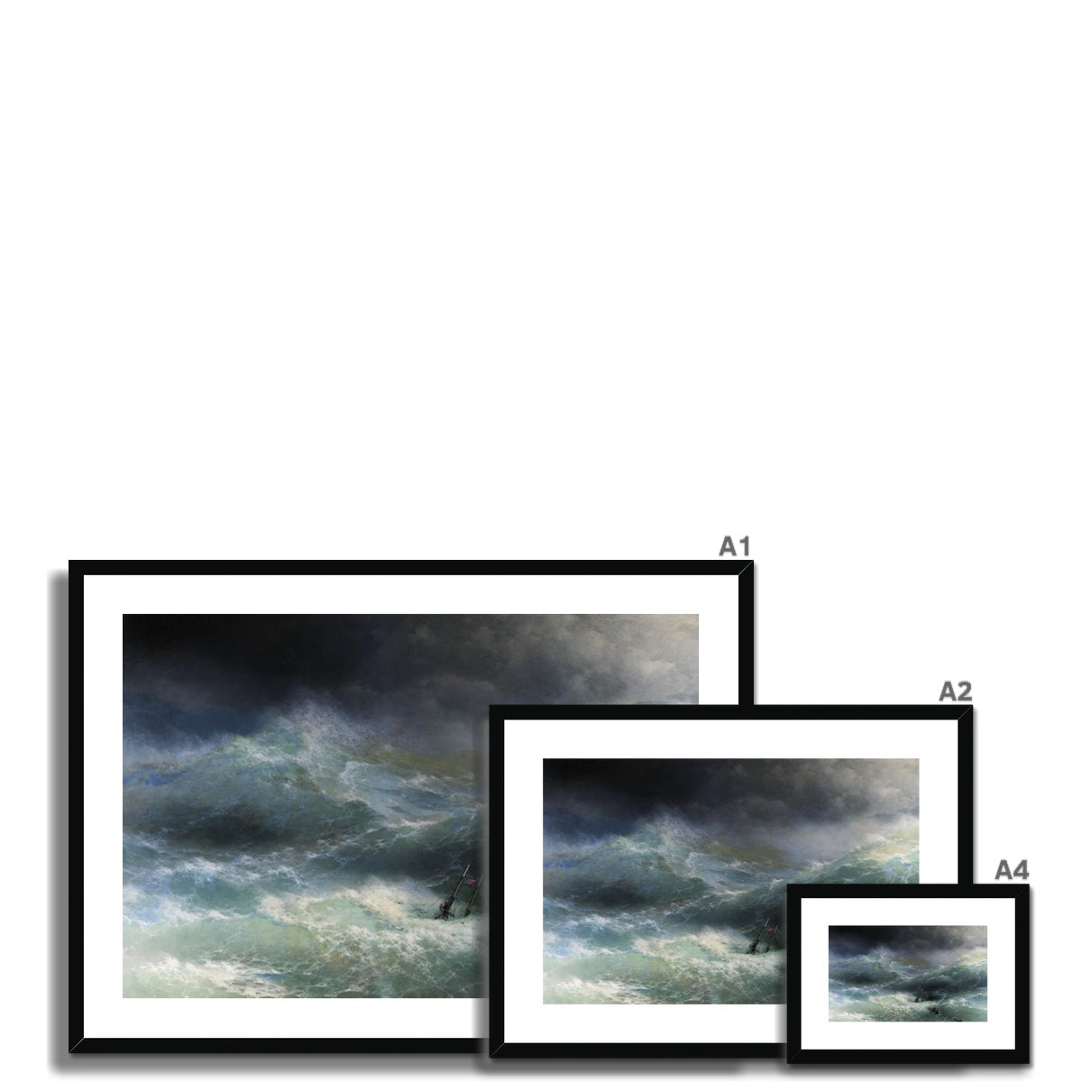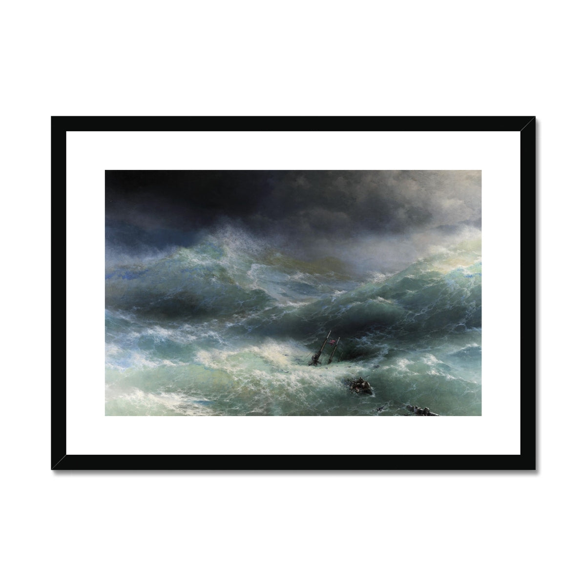 The Wave (1889) by Ivan Aivazovsky is a dramatic seascape that captures the raw power and sublime beauty of the ocean. The painting features towering, tumultuous waves under a dark, stormy sky, with a shipwreck barely visible amidst the chaos. The small figures struggling against the overwhelming force of nature emphasize human vulnerability. Aivazovsky’s masterful use of light and shadow brings a dynamic, almost ethereal quality to the water, highlighting the translucent greens and foamy whites of the waves. This work epitomizes Aivazovsky’s ability to evoke both the majesty and menace of the sea.