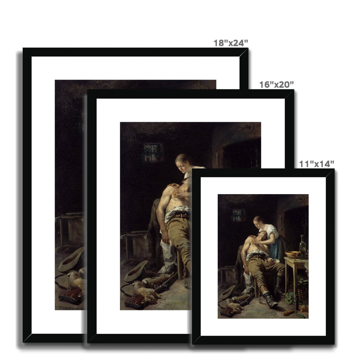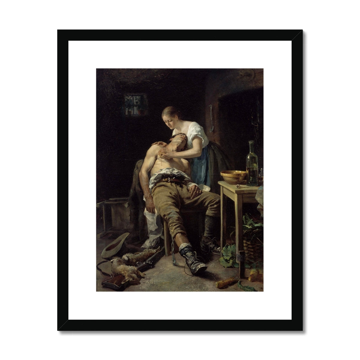 The Wounded Poacher (1881) by Henry Jones Thaddeus is a poignant and dramatic realist painting that captures an intimate moment of compassion and despair. A young man, wounded and exhausted, slumps in a chair while a woman gently cradles him, tending to his injuries. The rustic interior, complete with hunting gear, a rifle, and game on the floor, sets the scene of hardship and danger. The play of light highlights the vulnerability of the poacher and the quiet strength of the woman, evoking themes of survival, love, and human dignity in the face of suffering.