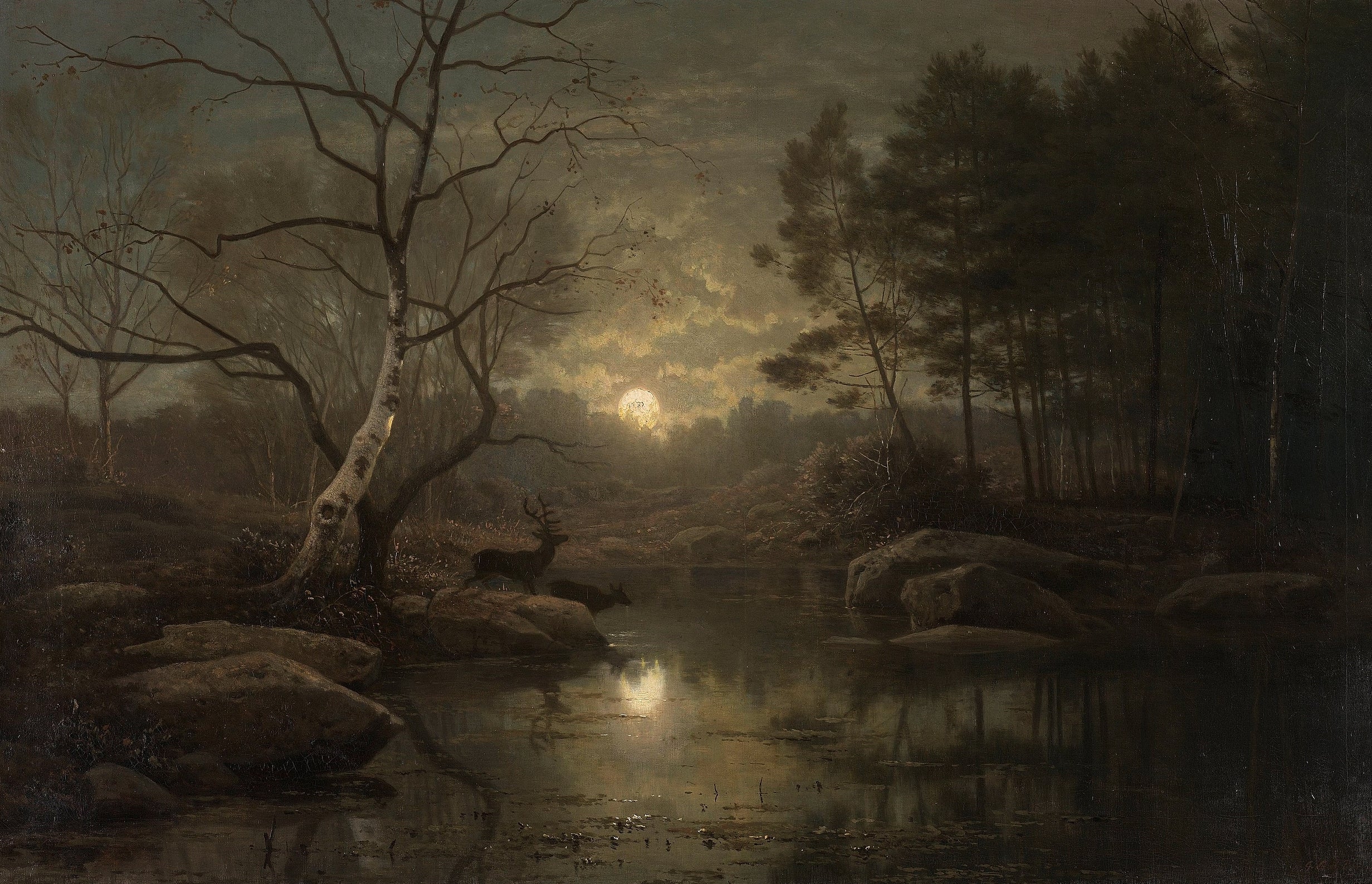 Forest Landscape in the Moonlight | Georg Eduard Otto Saal | 1861