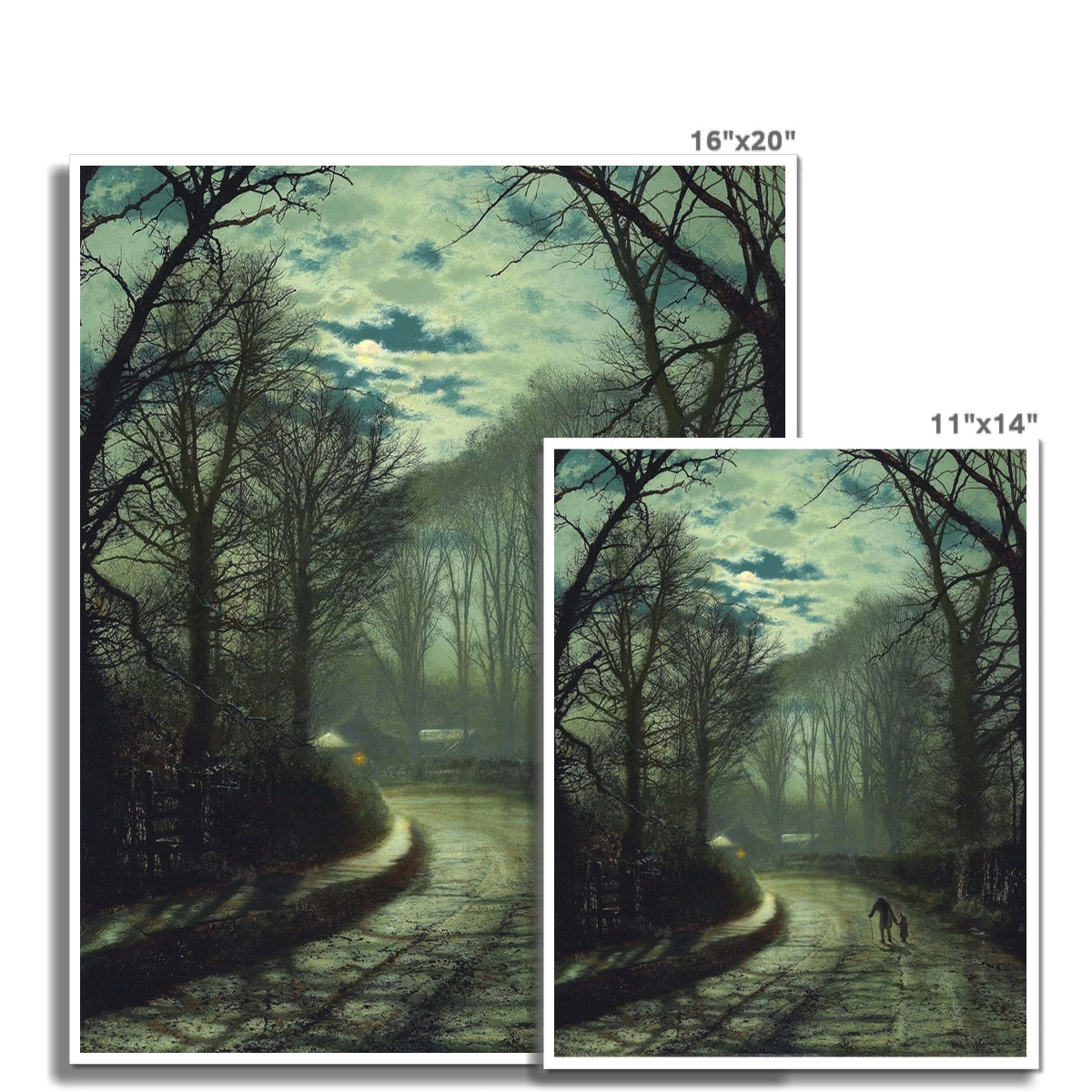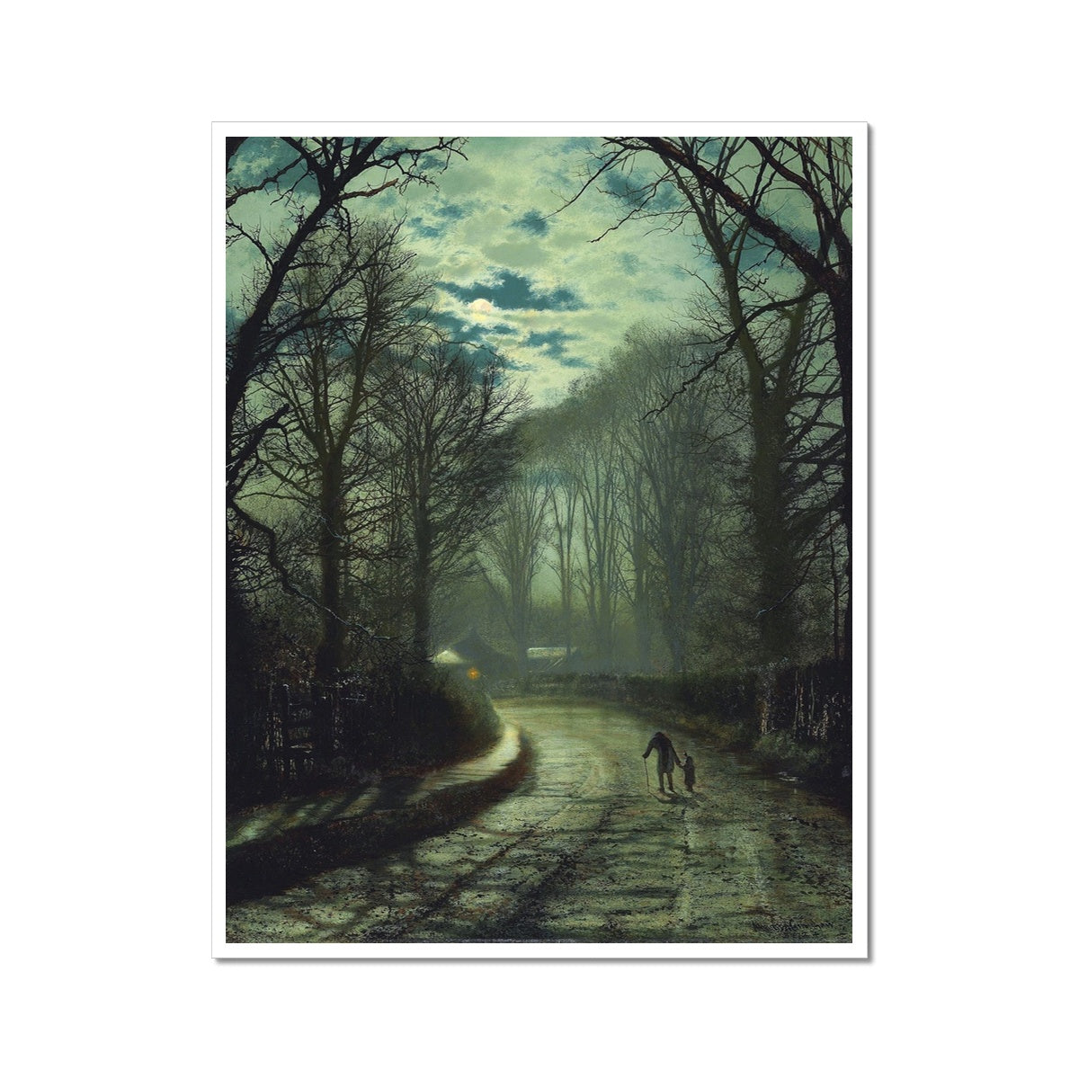 Grimshaw's 19th century masterpiece, "Nearing Home," features a majestic moonlit walk, captured in a beautiful fine art print. With its soft hues and subtle detail, this work of art brings peace and serenity to any space.