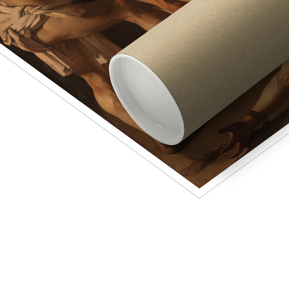 "Prometheus Chained by Vulcan" is a painting by Dutch Baroque artist Dirck van Baburen. It depicts the mythological scene in which the god Vulcan chains the Titan Prometheus to a rock as punishment for stealing fire from the gods and giving it to humanity. The painting is characterized by van Baburen's dramatic use of light and dark, with the contrasts of light and shadow adding to the sense of emotional intensity in the scene. The figure of Prometheus is depicted in a highly realistic manner, with his muscular body and strained facial expression conveying a sense of physical and emotional pain. The intricate details of Vulcan's tools and the surrounding landscape also contribute to the painting's dramatic impact. Van Baburen's use of color is also noteworthy, with the warm hues of the figures' skin tones and clothing contrasting against the cool blues and greens of the background. "Prometheus Chained by Vulcan" is considered one of van Baburen's masterpieces and is widely recognized as a powerful example of Dutch Baroque art.