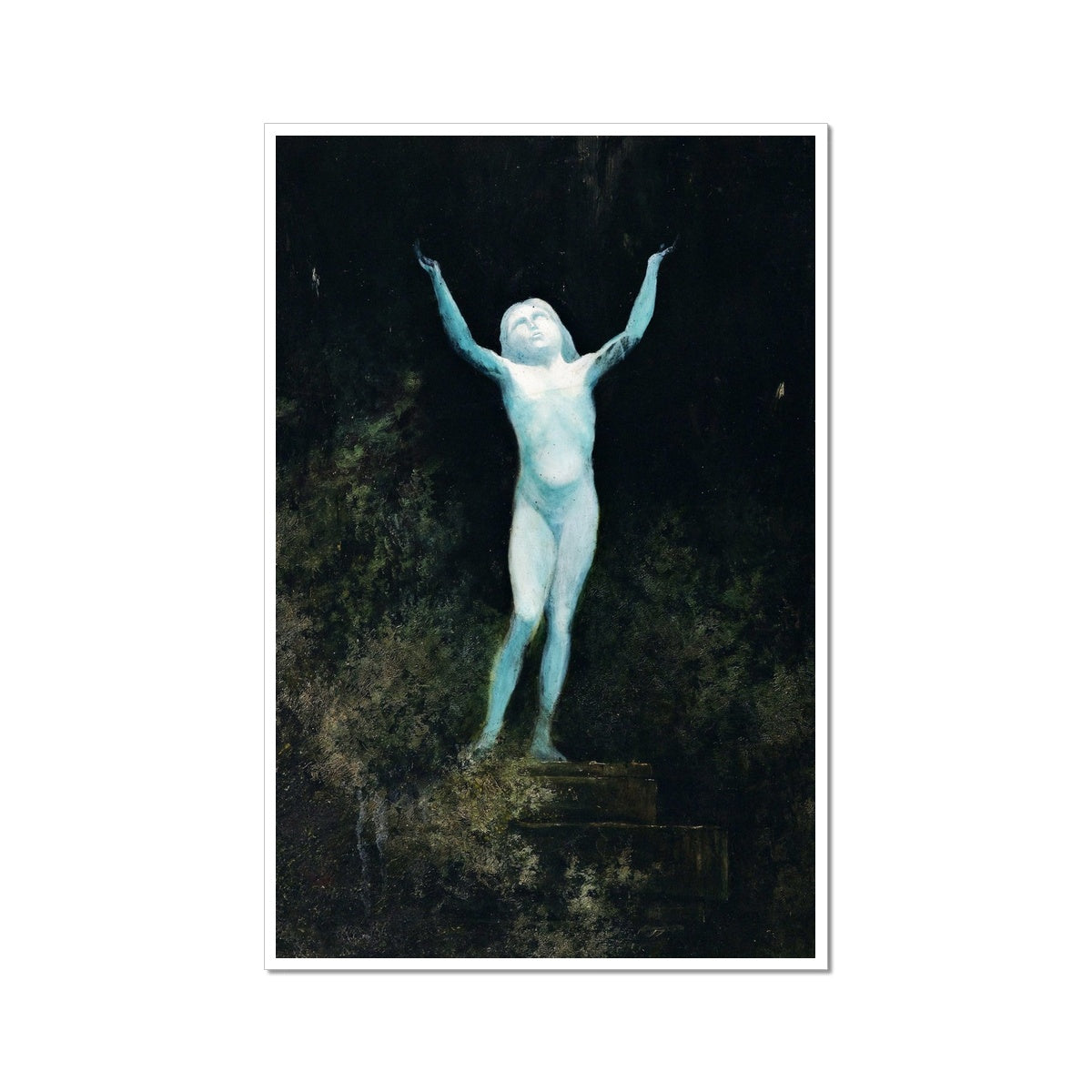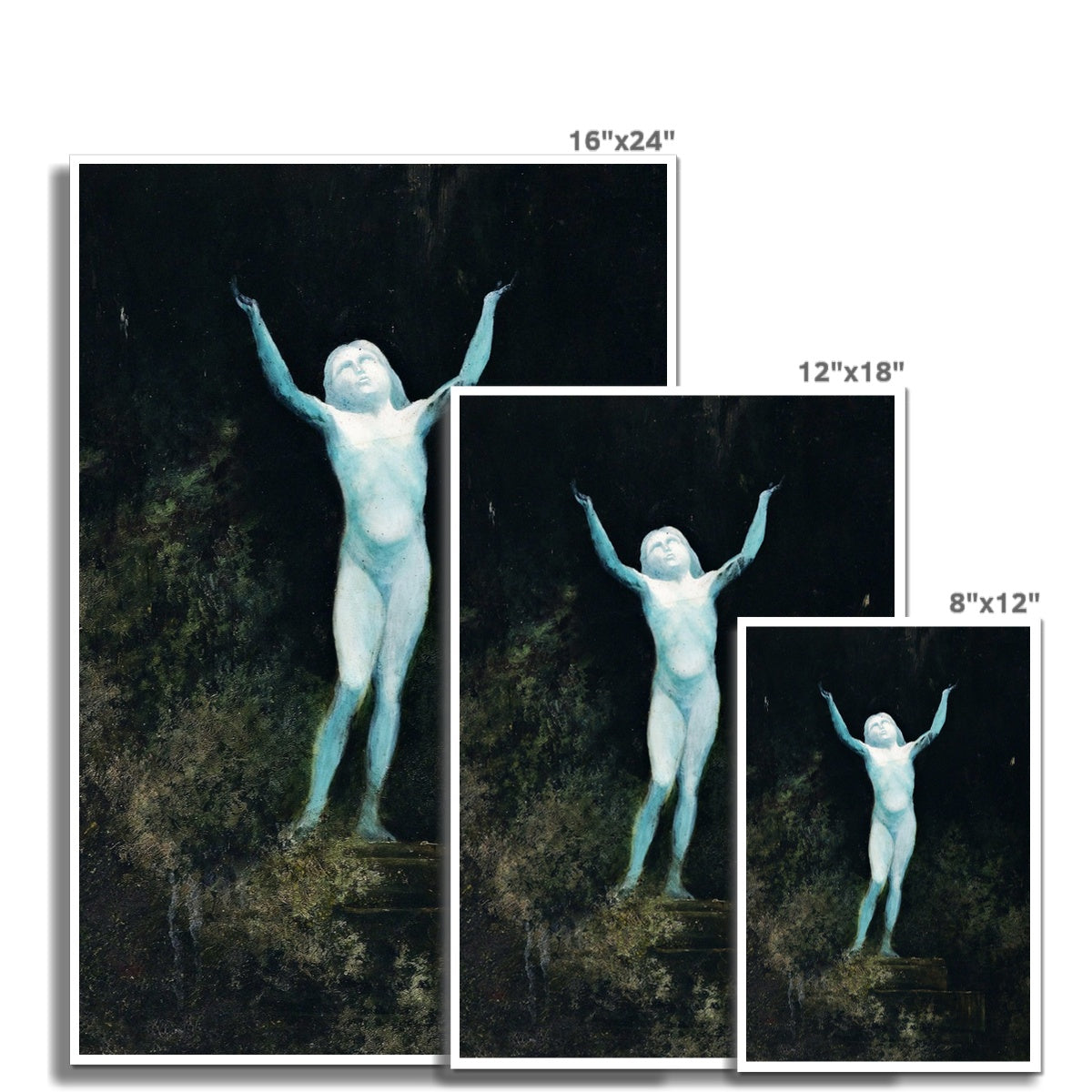 "The Appearance," a captivating work from circa 1890, is a testament to Karl Wilhelm Diefenbach's artistic vision and mastery of chiaroscuro. This piece strikingly portrays a figure illuminated against a dark, almost impenetrable background, evoking a sense of revelation or epiphany. The subtle luminosity of the figure, bathed in an ethereal light, contrasts powerfully with the surrounding shadows, inviting contemplation on the interplay between light and darkness. Diefenbach's use of muted colors and the soft rendering of the figure’s outlines contributes to the painting's mystical and enigmatic quality, characteristic of the symbolist movement of that era.