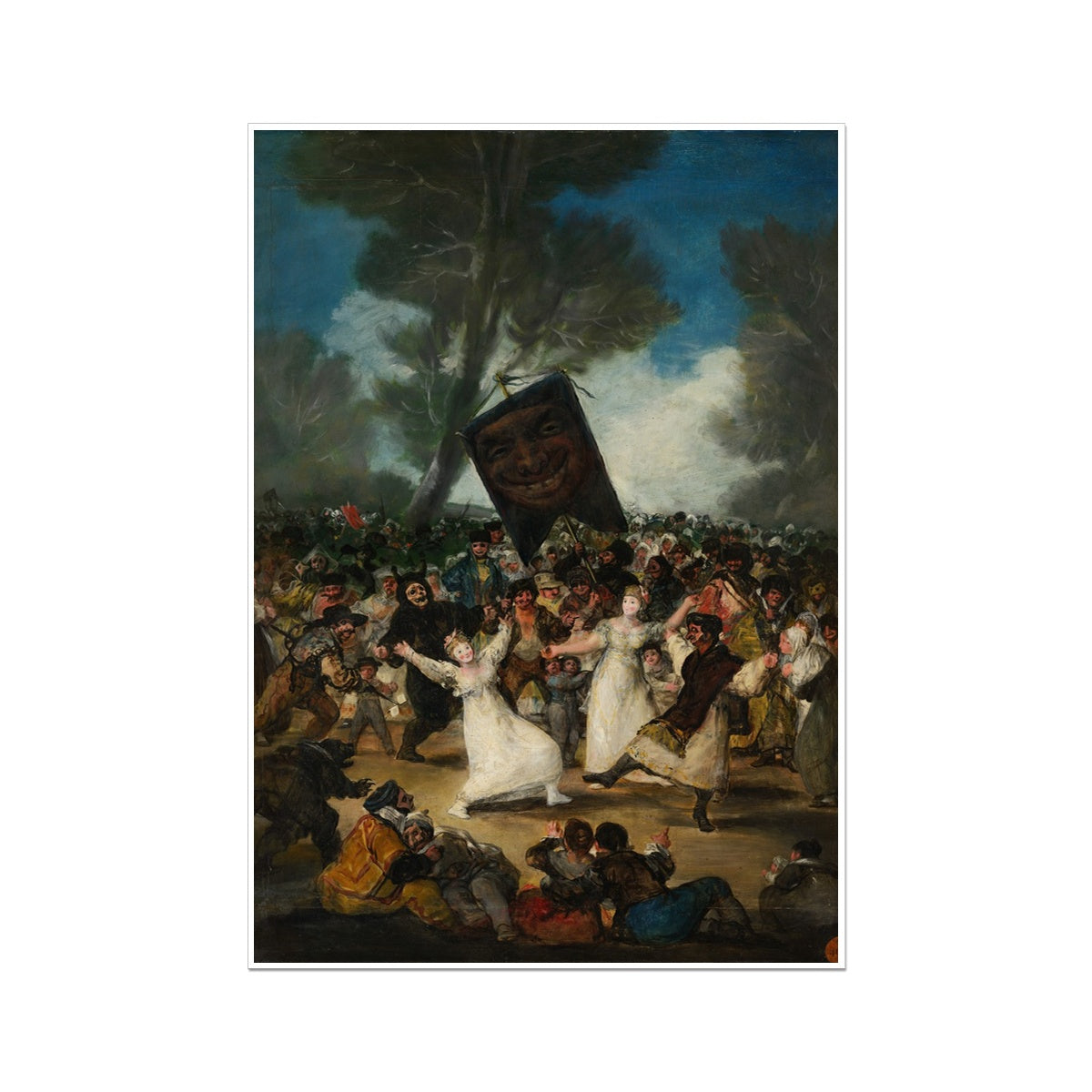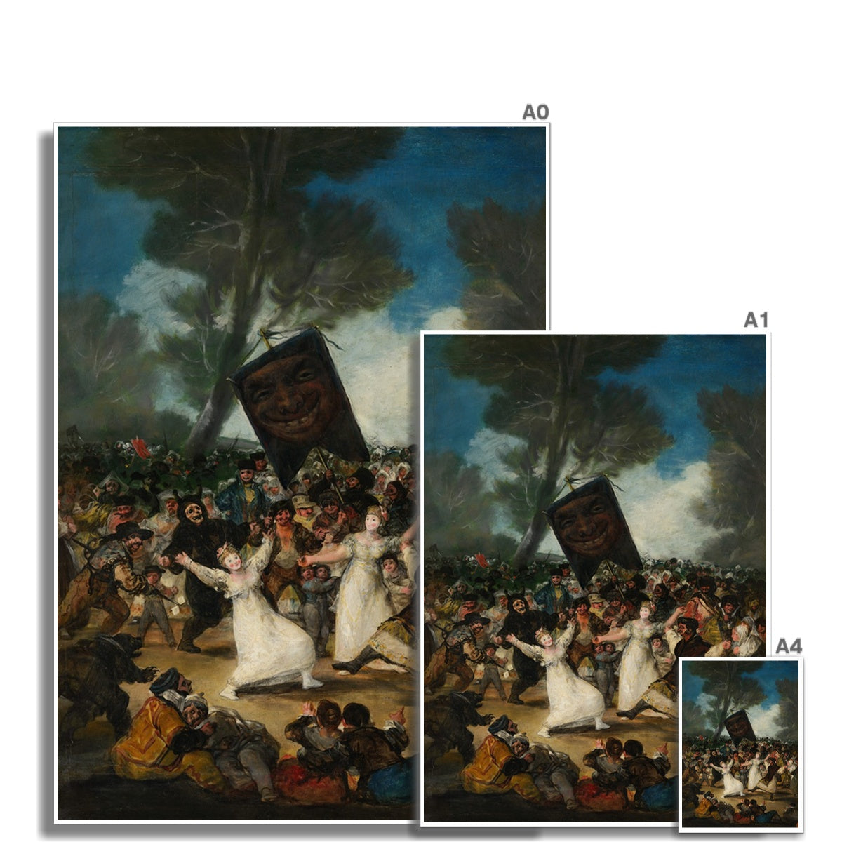 The Burial of the Sardine is an oil on panel painting by Spanish artist Francisco Goya, usually dated to the 1810s. The title is posthumous, referring to the culminating event of a three-day carnival in Madrid ending on Ash Wednesday. Masked and disguised revellers are seen dancing their way to the banks of the Manzanares, where a ceremonial sardine will be buried. Goya does not illustrate the fish in the painting, nor the large doll made of straw, called a pelele, from which it hung; the centrepiece is the darkly grinning "King of the Carnival".