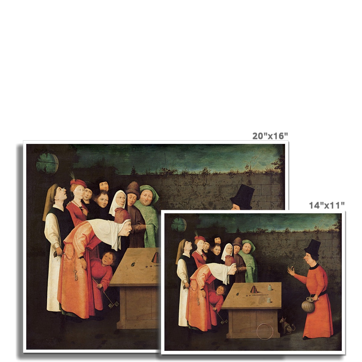 This fine art print of Hieronymus Bosch's masterwork, The Conjurer, is a must-have for art enthusiasts. Originally created in 1502, the painting's bold, vibrant colours and intricate details are faithfully recreated in this beautiful reproduction.