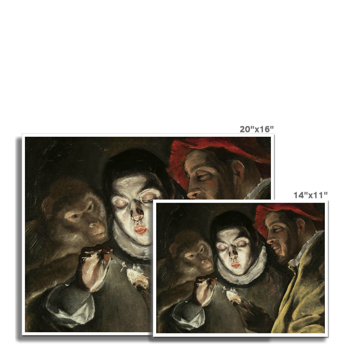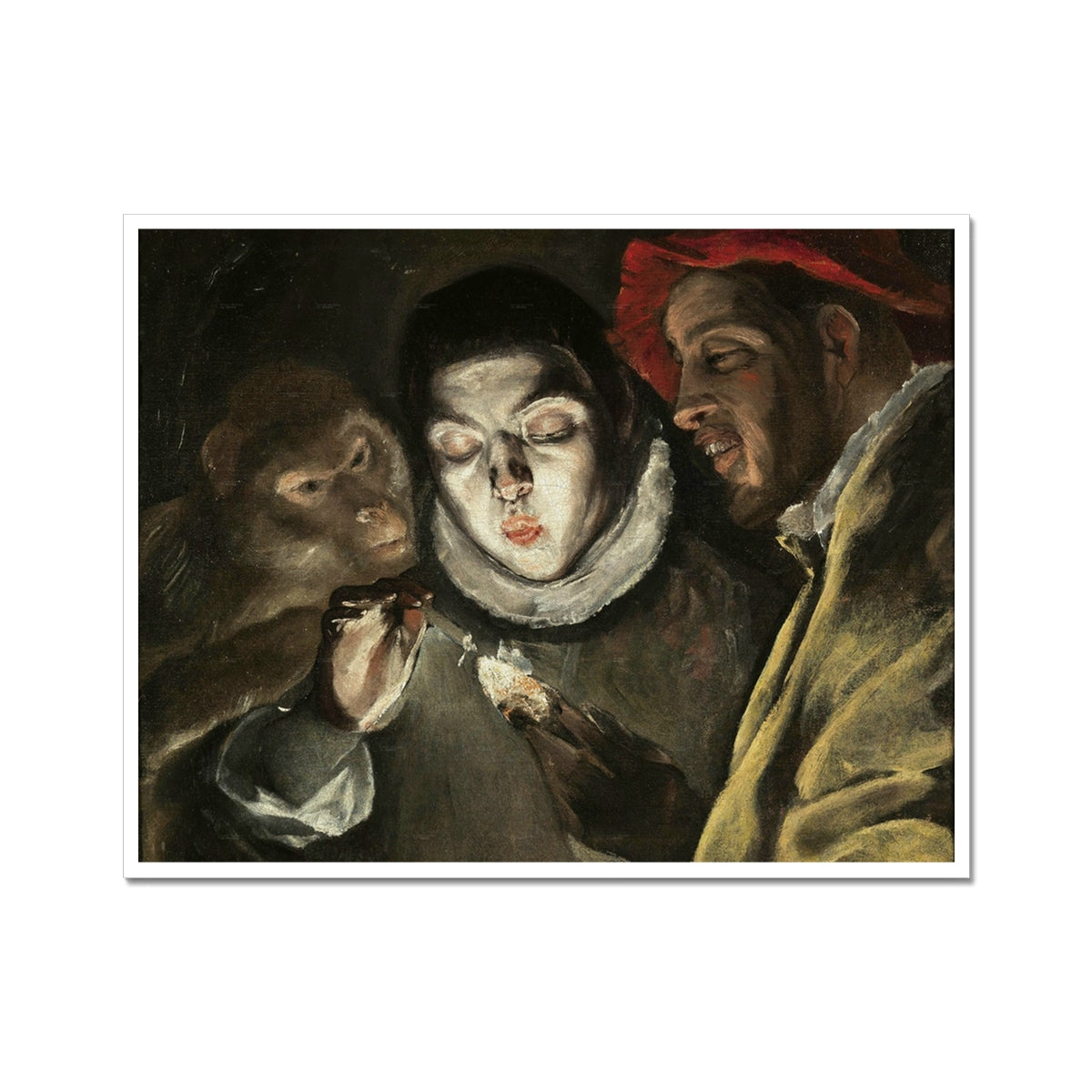 The work is notable for its intense chiaroscuro and psychological depth, characteristic of El Greco's dramatic and expressive style. Though the precise meaning remains ambiguous, the painting is often viewed as a moral allegory about vanity, ignorance, and deception.