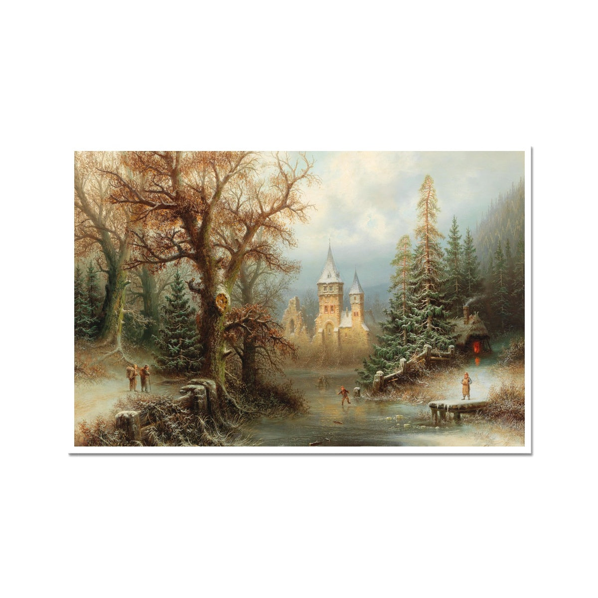 Winter Ice Skaters by a Castle | Albert Bredow | 1899