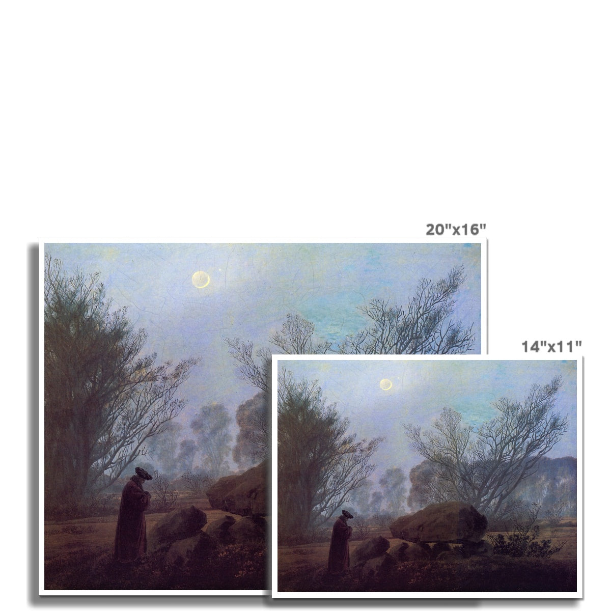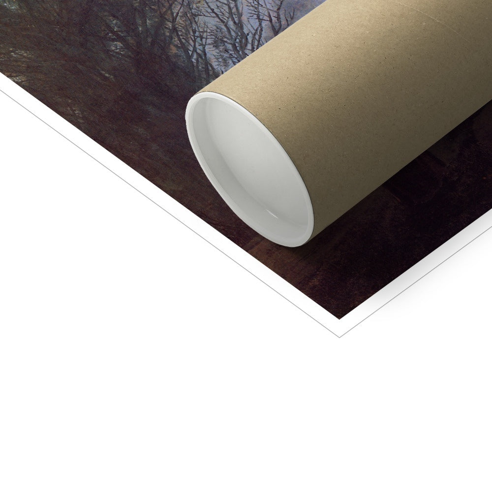 "A Walk at Dusk" is a painting by German Romantic artist Caspar David Friedrich, created in the early 19th century. The painting depicts a figure walking along a path through a dark, misty landscape. The painting is characterized by its moody, atmospheric tone, and its emphasis on the emotional response of the viewer. The painting is considered an important work of Romantic art and reflects Friedrich's interest in capturing the moods and emotions of the natural world. The painting is notable for its use of light and colour to create a sense of mystery and isolation, as well as its focus on the subjective, emotional experience of the individual. The painting is considered one of Friedrich's most important works and is widely regarded as a masterpiece of German Romanticism.