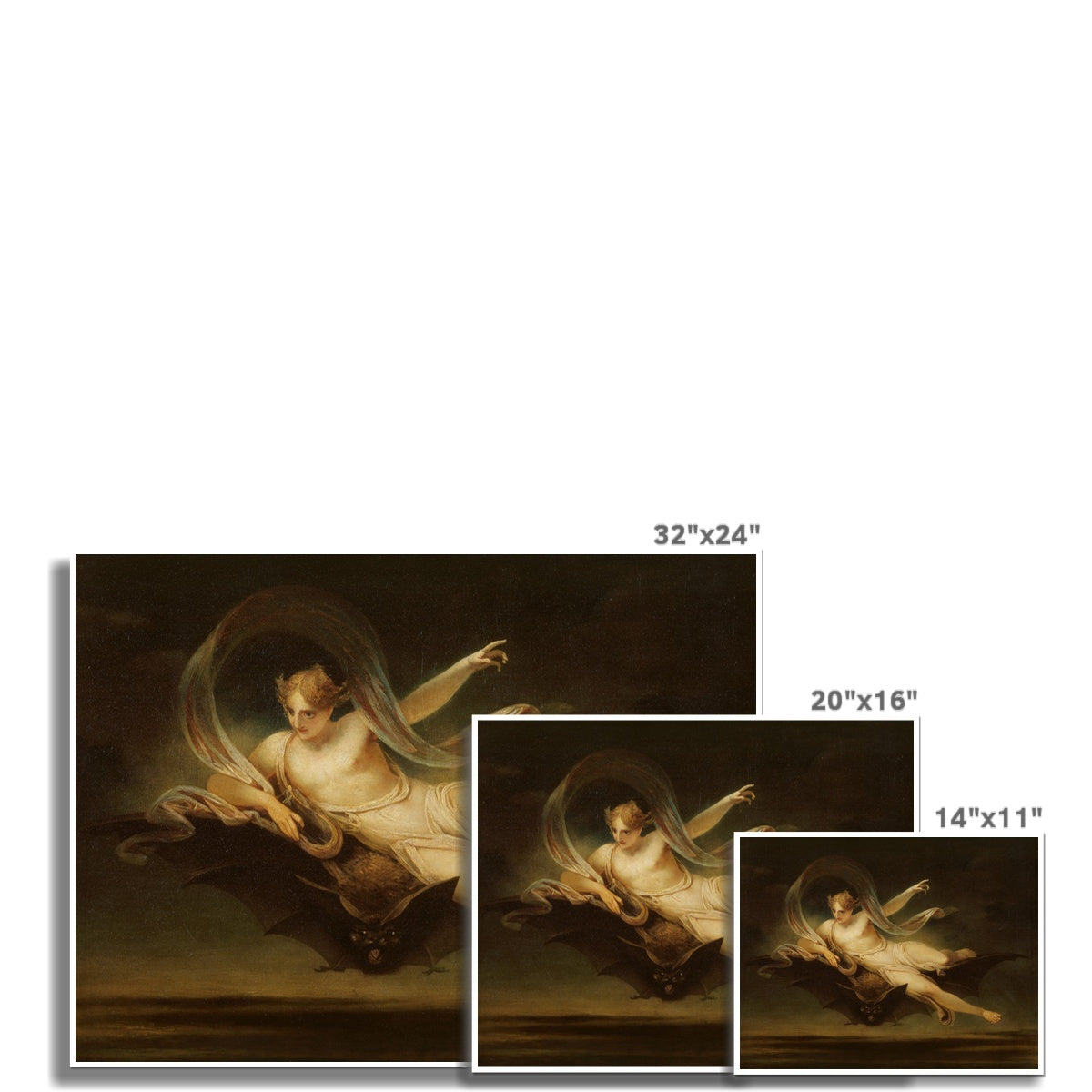 This stunning fine art print captures the essence of Henry Singleton's 1819 masterpiece, Ariel on a Bat's Back. this painting captures Ariel, the enchanting spirit from Shakespeare's renowned play, The Tempest. Originally displayed alongside verses from Ariel's final song, the painting vividly portrays the character's flight on a bat's back, symbolizing the joyful transition beyond summer. Singleton, the artist behind this captivating work, chose to depict this entertaining and theatrical theme in response to the prevailing preferences of the era.
