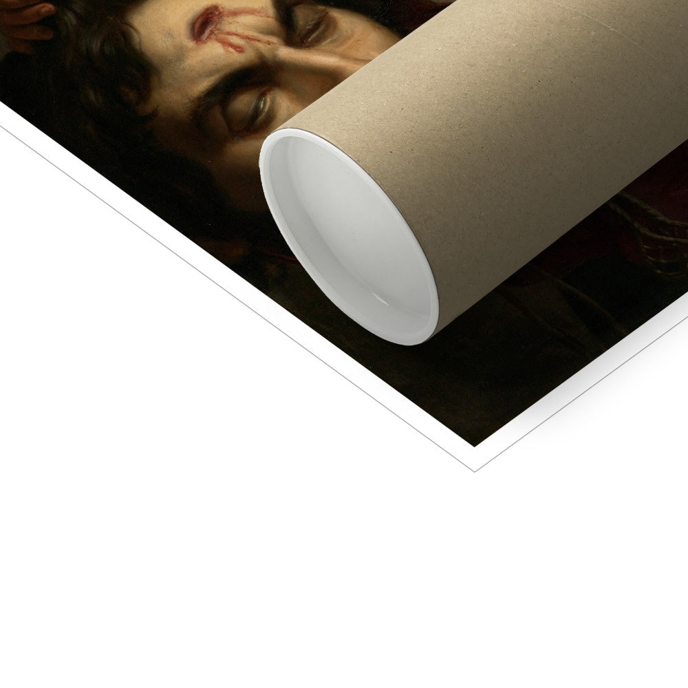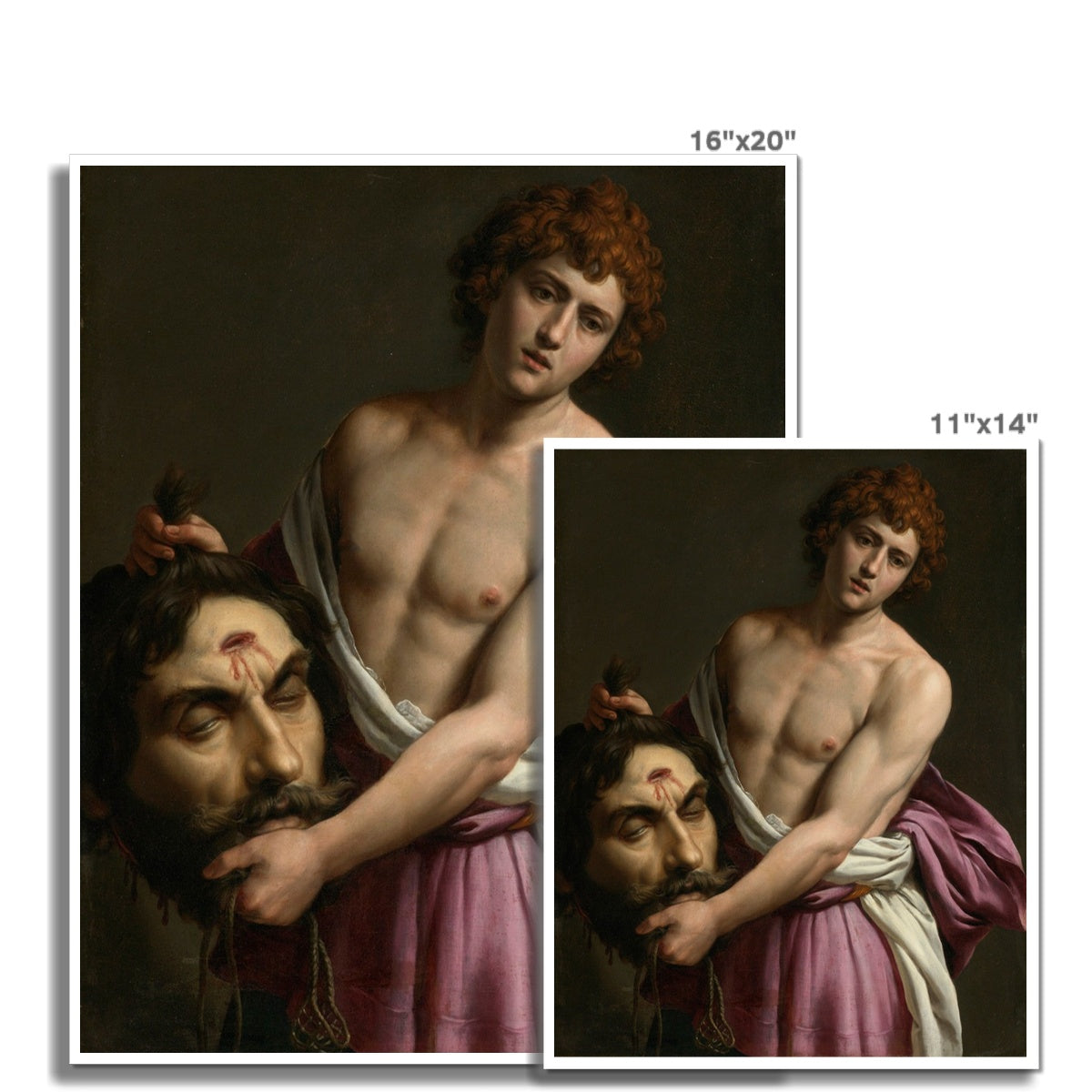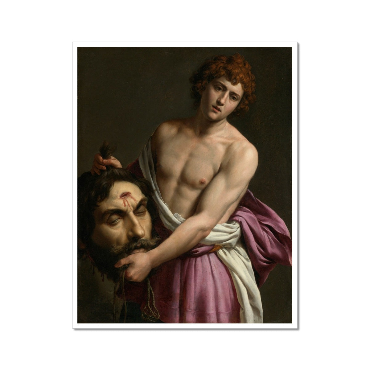"David with the Head of Goliath" is a painting by Italian Baroque artist Alessandro Turchi, also known as Orbetto. The painting depicts the Biblical story of David, who defeated the giant warrior Goliath with a single stone from his sling. In the painting, David is shown holding Goliath's severed head, looking out at the viewer with a determined expression. The painting is notable for its dramatic composition, with David and the head of Goliath occupying the center of the canvas and surrounded by a dark, emotive background. The painting is considered an important work of Baroque art and reflects Turchi's skill as a painter and his ability to create powerful, dramatic scenes. The painting is admired for its dramatic tension, its intense emotion, and its bold and confident brushwork.
