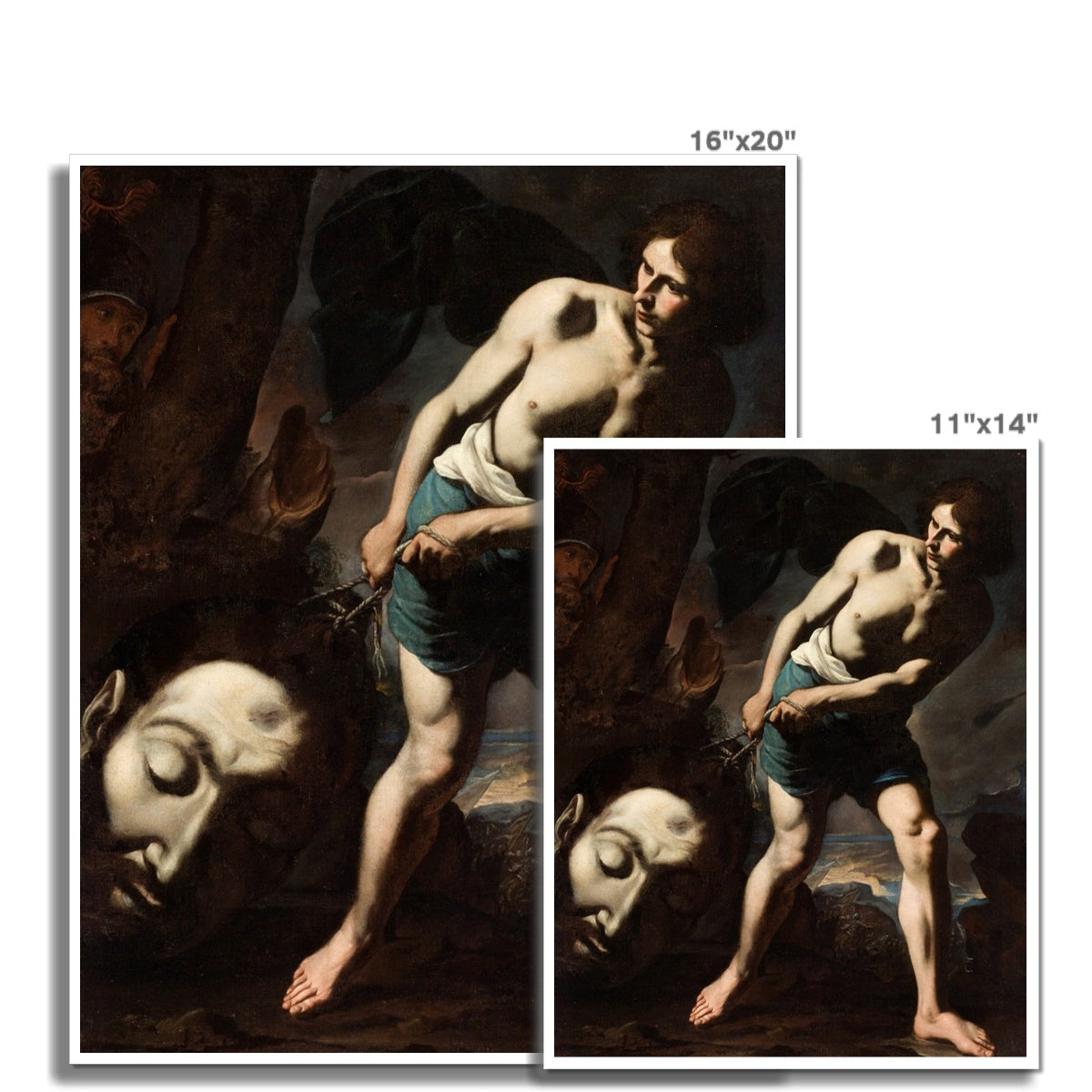 "David with the Head of Goliath" is a painting by Italian Baroque artist Andrea Vaccaro, created in the 17th century. The painting depicts the Biblical story of David, who defeated the giant warrior Goliath with a single stone from his sling. In the painting, David is shown dragging Goliath's severed head, looking down at it as he pulls. The painting is notable for its dramatic composition, with David and the head of Goliath occupying the center of the canvas and surrounded by a dark, emotive background. The painting is considered an important work of Baroque art and reflects Vaccaro's skill as a painter and his ability to create powerful, dramatic scenes. The painting is admired for its dramatic tension, its intense emotion, and its bold and confident brushwork.