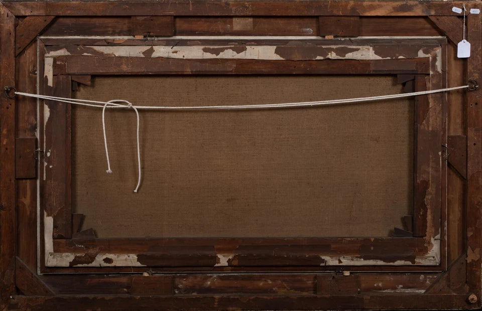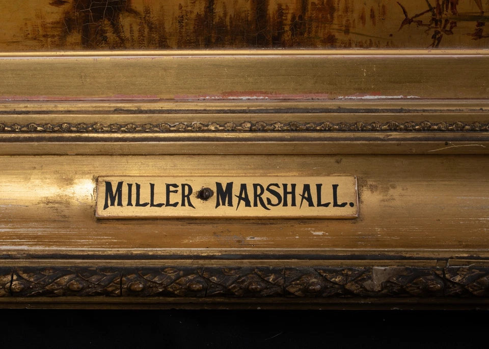 A magnificent large scale 19th-century oil on canvas depicting a tranquil Norfolk ferry crossing at sunset by Miller Marshall (1850–1920). Bathed in the warm glow of the setting sun, the scene captures a drover preparing to ferry his cattle across calm waters, framed by golden skies and reflective stillness. Marshall’s masterful handling of light and atmosphere evokes both serenity and the quiet rhythm of rural life.