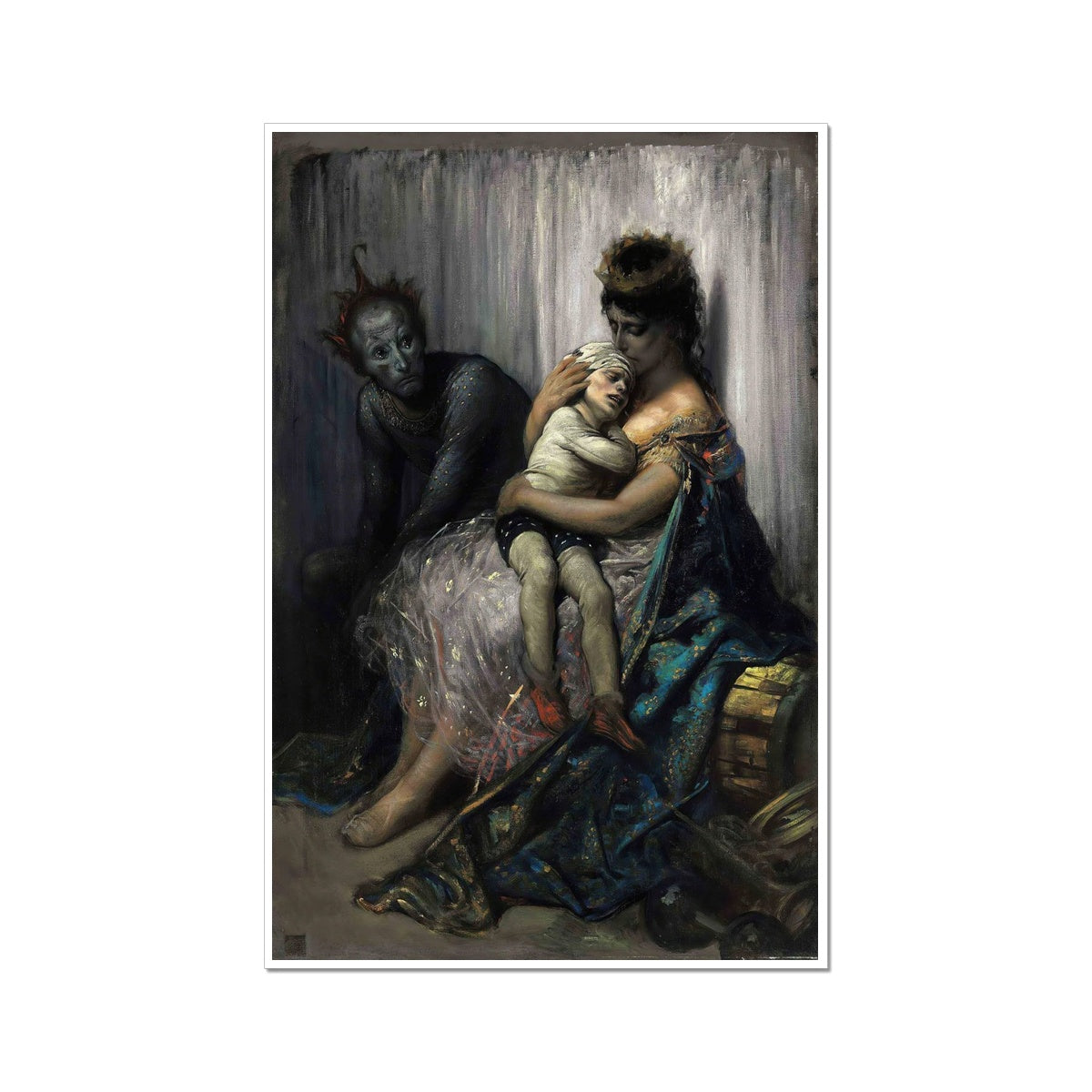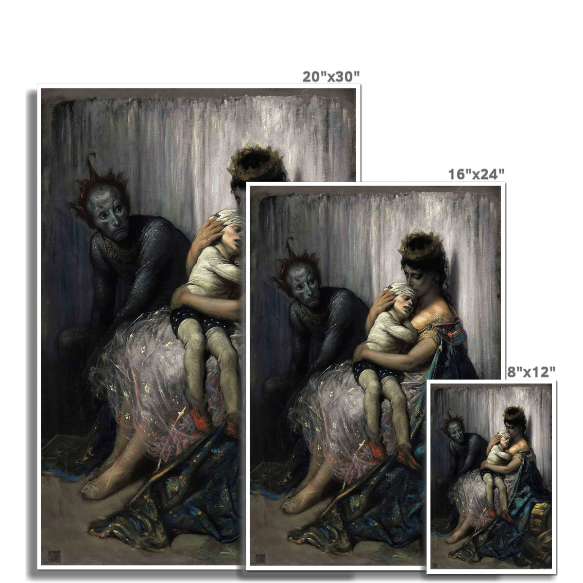 The Injured Child is an iconic painting by Gustave Doré, produced in 1873. This fine art print is a timeless masterpiece, depicting the sorrows of a young child with his family of street acrobats.