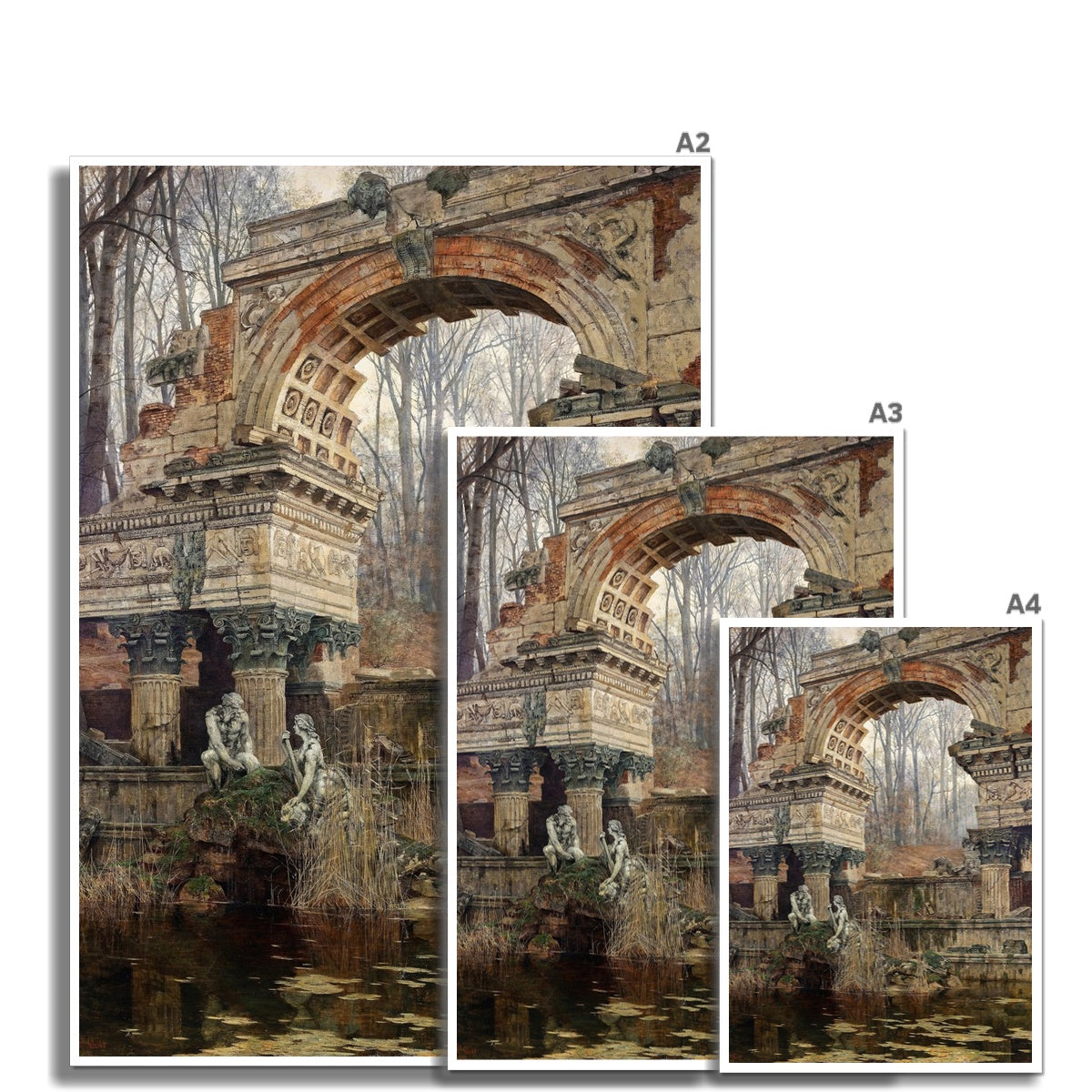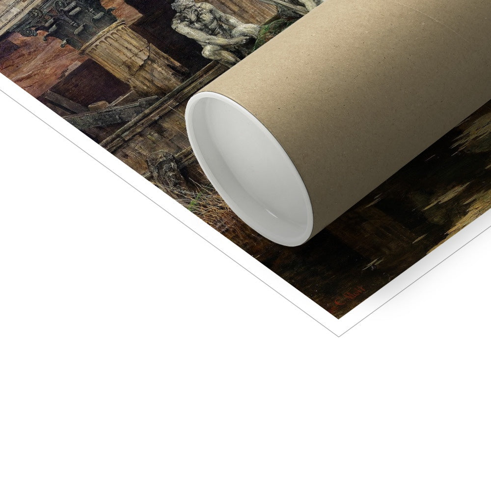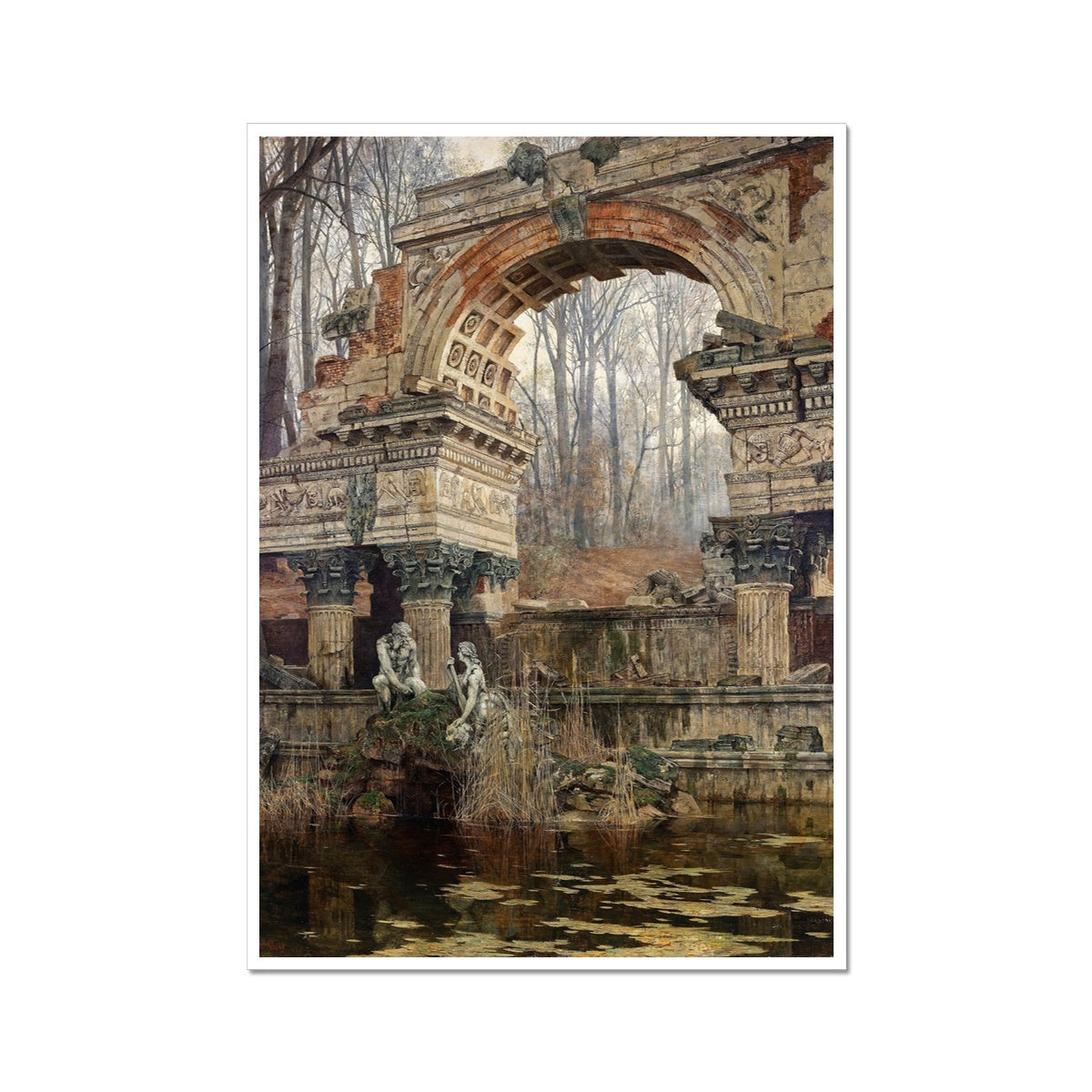 The Roman Ruin in Schönbrunn, an 1892 fine art print by Carl Moll, captures the dense atmosphere of a haunted ruin. This print is printed on quality paper for crisp details, perfect for your gallery wall. The gloomy atmosphere of this piece will add an air of mystery to any space.