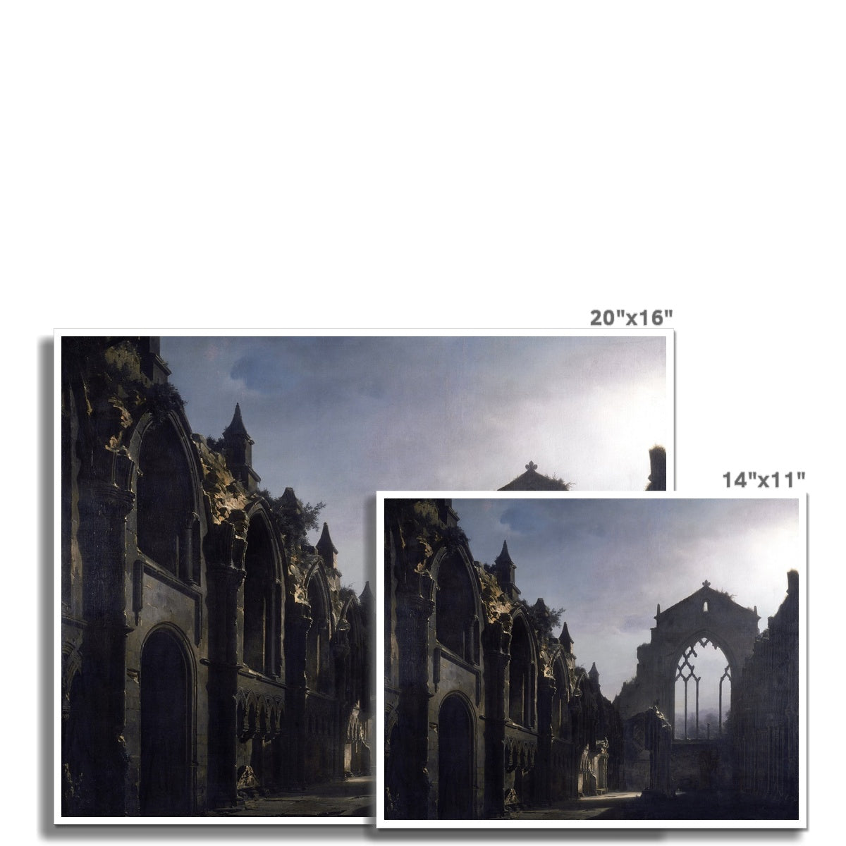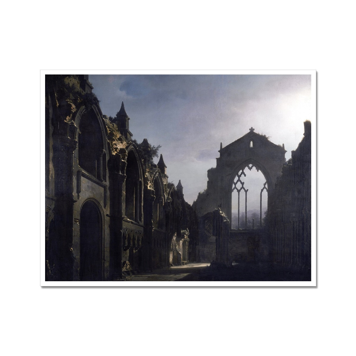 This fine art print by Louis Daguerre captures The Ruins of Holyrood Chapel in 1824. Daguerre's distinct style of lighting and detailed composition captures the magnificence of the ancient ruin. A perfect piece for any enthusiast of art and history.
