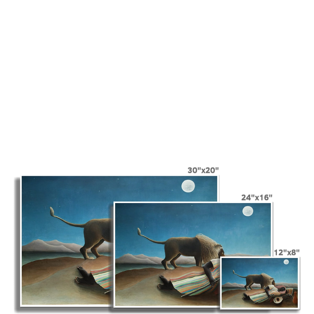This Henri Rousseau painting from 1897 captures the surreal beauty of "The Sleeping Gypsy". Its high-quality fine art print is guaranteed to bring a touch of classic elegance to any wall. Captivate your audience with this timeless, exquisite piece of art.