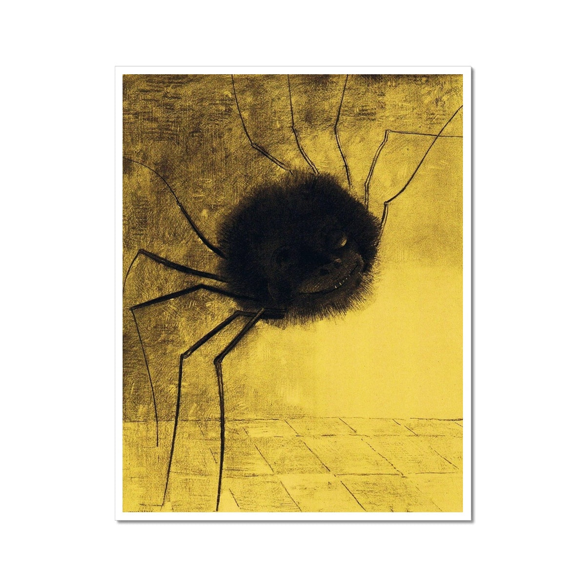 Add a hauntingly unique art piece to your home with The Smiling Spider print from Odilon Redon's Fantastic Dreams series in 1887. The fine art print encapsulates the artist's dark, imaginative style, creating a disturbing but captivating work of art.